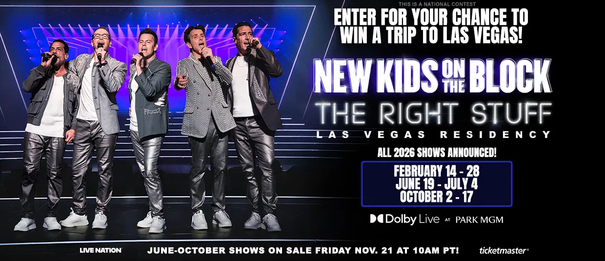 New Kids on the Block are headed back to Vegas for The Right Stuff Las Vegas Residency, and we want to send you to see the guys who made you believe in love at first cassette tape!